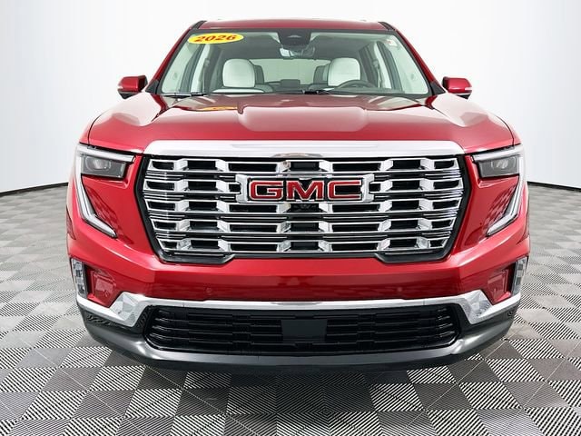Volcanic Red Tintcoat 2026 GMC Acadia Denali FWD 8-Speed Automatic 2.5L DOHC FWD, Sheer/Very Dark Atmosphere Leather.