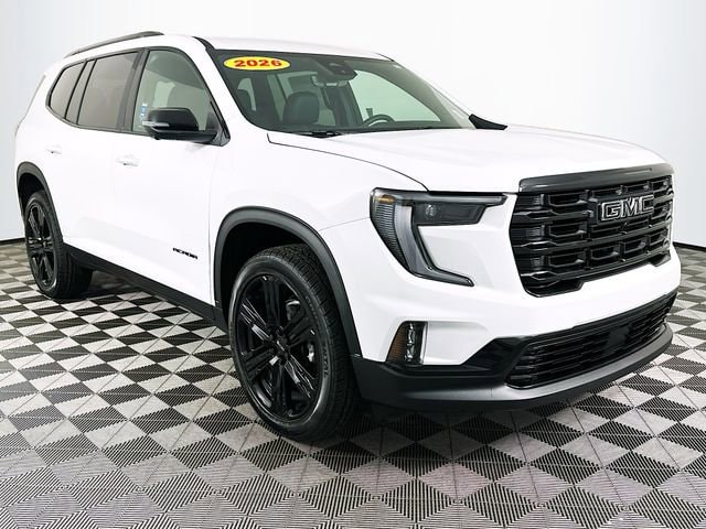 Summit White 2026 GMC Acadia Elevation FWD 8-Speed Automatic 2.5L DOHC FWD, After Dark Cloth.