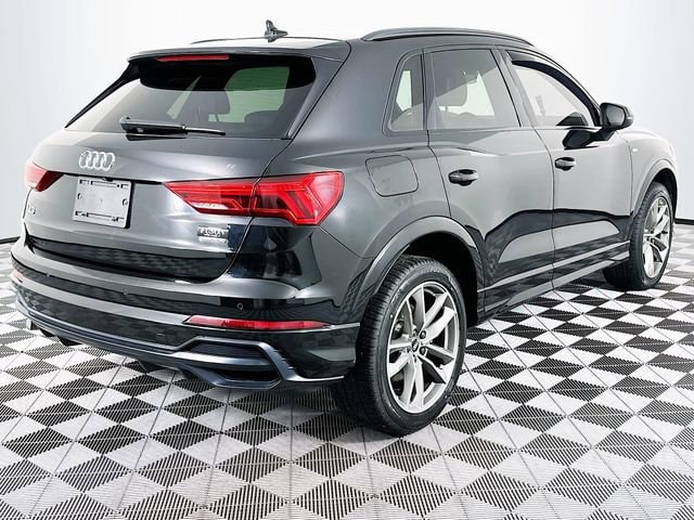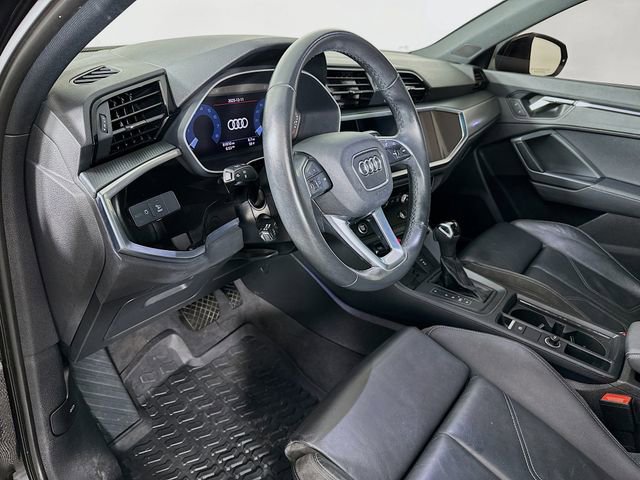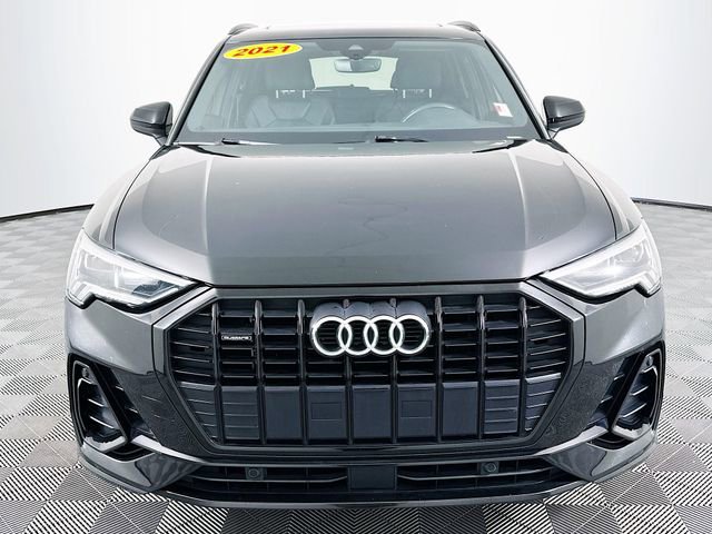 10 Speakers, 3.533 Axle Ratio, 4-Wheel Disc Brakes, ABS brakes, Air Conditioning, Alloy wheels, AM/FM radio, Audi smartphone interface (Apple CarPlay/Android Auto), Auto High-beam Headlights, Automatic temperature control, Brake assist, Bumpers: body-color, Delay-off headlights, Driver door bin, Driver vanity mirror, Dual front impact airbags, Dual front side impact airbags, Electronic Stability Control, Exterior Parking Camera Rear, Four wheel independent suspension, Front anti-roll bar, Front Bucket Seats, Front Center Armrest, Front dual zone A/C, Front fog lights, Front reading lights, Fully automatic headlights, Heated door mirrors, Heated Front Bucket Seats, Heated front seats, Illuminated entry, Knee airbag, Leather Seating Surfaces, Leather Shift Knob, Leather steering wheel, Low tire pressure warning, Occupant sensing airbag, Outside temperature display, Overhead airbag, Overhead console, Panic alarm, Passenger door bin, Passenger vanity mirror, Power door mirrors, Power driver seat, Power Liftgate, Power moonroof, Power passenger seat, Power steering, Power windows, Radio data system, Radio: Audi Sound System, Rain sensing wipers, Rear air conditioning, Rear anti-roll bar, Rear fog lights, Rear reading lights, Rear seat center armrest, Rear window defroster, Rear window wiper, Remote keyless entry, Speed control, Speed-sensing steering, Split folding rear seat, Spoiler, Steering wheel mounted audio controls, Tachometer, Telescoping steering wheel, Tilt steering wheel, Traction control, Trip computer, Turn signal indicator mirrors, Variably intermittent wipers, and Wheels: 18 5-Twin-Spoke Dynamic Design. Clean CARFAX. Mythos Black Metallic Audi 2021 Q3 Premium Plus S Line quattro
