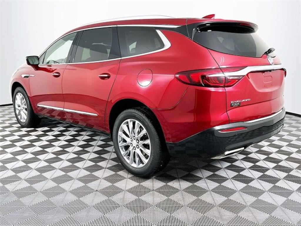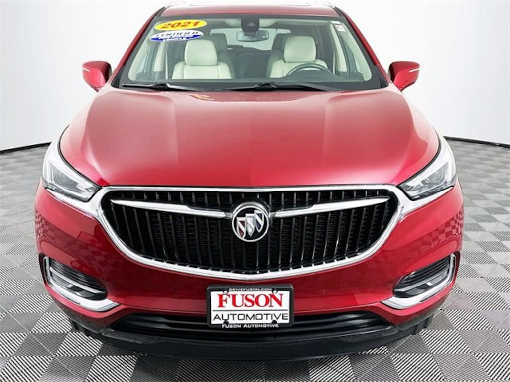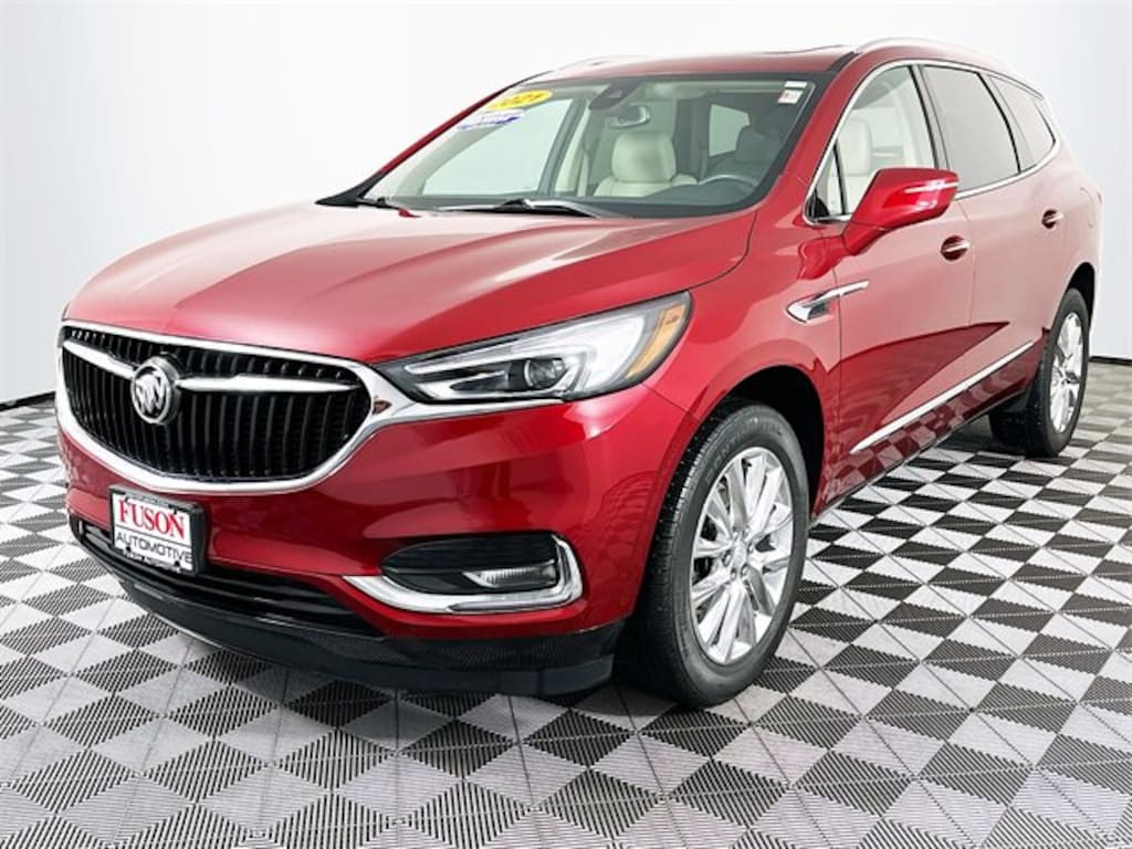 Front Mounting License Plate Bracket Package, Memory Package, Preferred Equipment Group 1SN, Premium Package (120-Volt Power Outlet, 3rd Row 60/40 Power Fold Split-Bench, Automatic Heated Steering Wheel, HD Radio, Heated 2nd Row Outboard Seats, Outside Heated Power-Adjustable Mirrors, and Power Tilt & Telescopic Steering Column), Sun & Sites Package (20 Polished Aluminum Wheels, Bose Performance-Enhanced 10-Speaker System, Front Power Sliding Moonroof, Radio: Buick Infotainment Sys AM/FM Stereo w/Nav, and SiriusXM w/360L), FWD, 10 Speakers, 18 Painted Aluminum Wheels, 3.49 Axle Ratio, 3rd row seats: split-bench, 4-Wheel Disc Brakes, 7-Passenger Seating, ABS brakes, Air Conditioning, Alloy wheels, AM/FM radio: SiriusXM with 360L, Apple CarPlay/Android Auto, Audio memory, Auto High-beam Headlights, Auto tilt-away steering wheel, Auto-dimming door mirrors, Auto-dimming Rear-View mirror, Automatic temperature control, Brake assist, Bumpers: body-color, Compass, Delay-off headlights, Driver 4-Way Power Lumbar Seat Adjuster, Driver door bin, Driver vanity mirror, Dual front impact airbags, Dual front side impact airbags, Electronic Stability Control, Emergency communication system: OnStar and Buick connected services capable, Four wheel independent suspension, Front anti-roll bar, Front Bucket Seats, Front Center Armrest, Front dual zone A/C, Front Passenger 4-Way Power Lumbar Seat Adjuster, Front reading lights, Fully automatic headlights, Garage door transmitter, Heated door mirrors, Heated Driver & Front Passenger Seats, Heated front seats, Heated rear seats, Heated steering wheel, Illuminated entry, Leather steering wheel, Low tire pressure warning, Memory seat, Navigation System, Occupant sensing airbag, Outside temperature display, Overhead airbag, Overhead console, Panic alarm, Passenger door bin, Passenger vanity mirror, Perforated Leather-Appointed Seat Trim, Power door mirrors, Power driver seat, Power Liftgate, Power passenger seat, Power steering, Power windows, Premium audio system: Buick Infotainment System, Radio data system, Radio: Buick Infotainment System AM/FM Stereo, Rear air conditioning, Rear anti-roll bar, Rear reading lights, Rear window defroster, Rear window wiper, Remote keyless entry, Roof rack: rails only, Security system, Speed control, Speed-sensing steering, Spoiler, Steering wheel memory, Steering wheel mounted audio controls, Tachometer, Telescoping steering wheel, Tilt steering wheel, Traction control, Trip computer, Turn signal indicator mirrors, Variably intermittent wipers, Ventilated Driver & Front Passenger Seats, Ventilated front seats, and Voltmeter. CARFAX One-Owner. Red Quartz Tintcoat Buick 2021 Enclave Premium Group