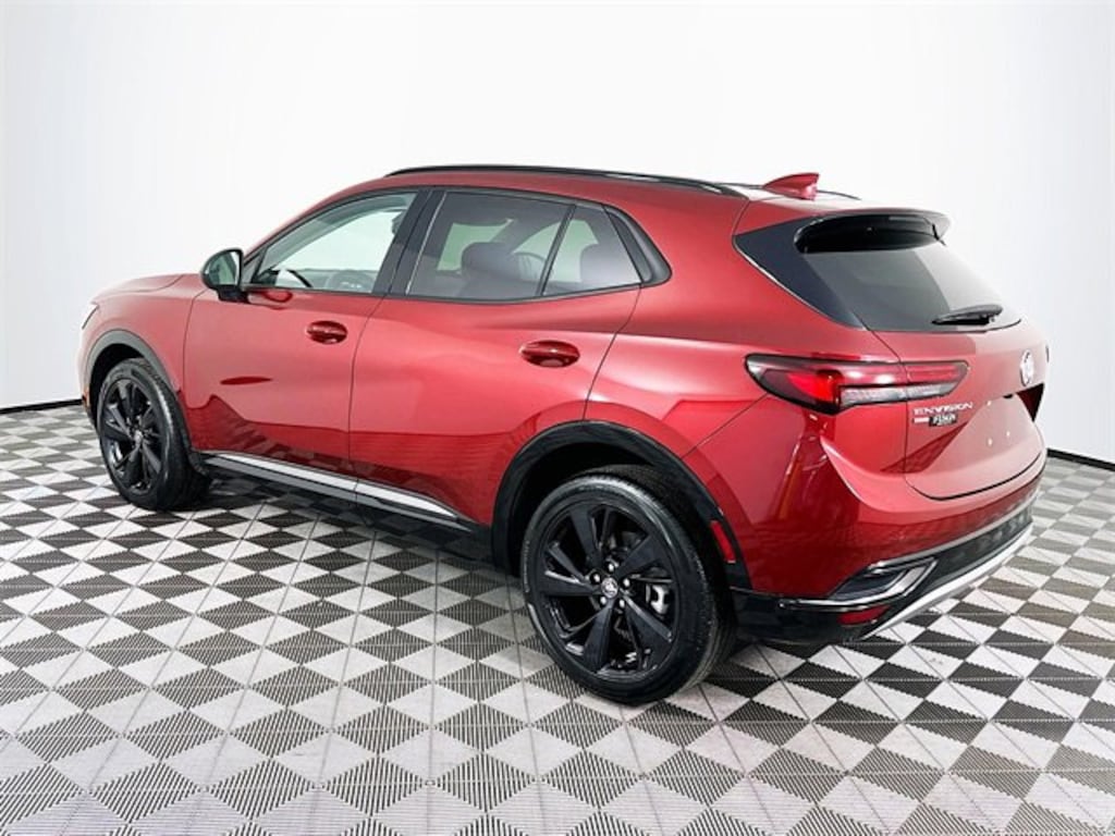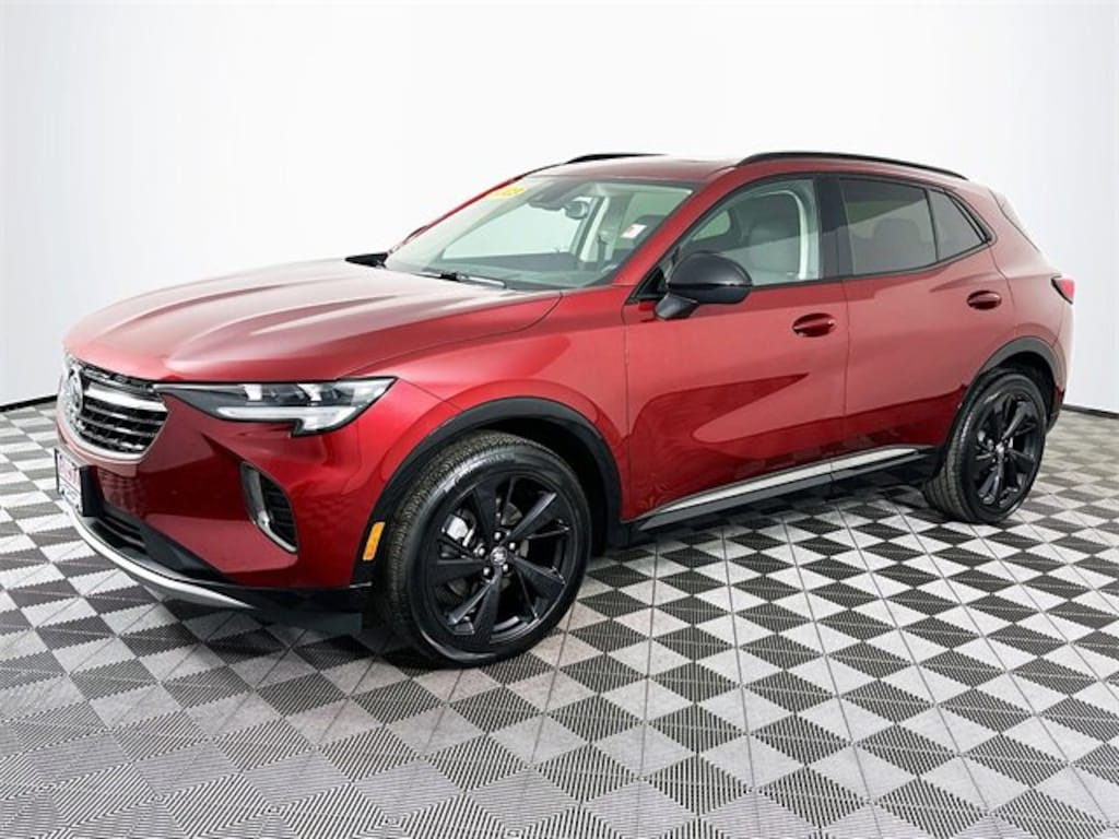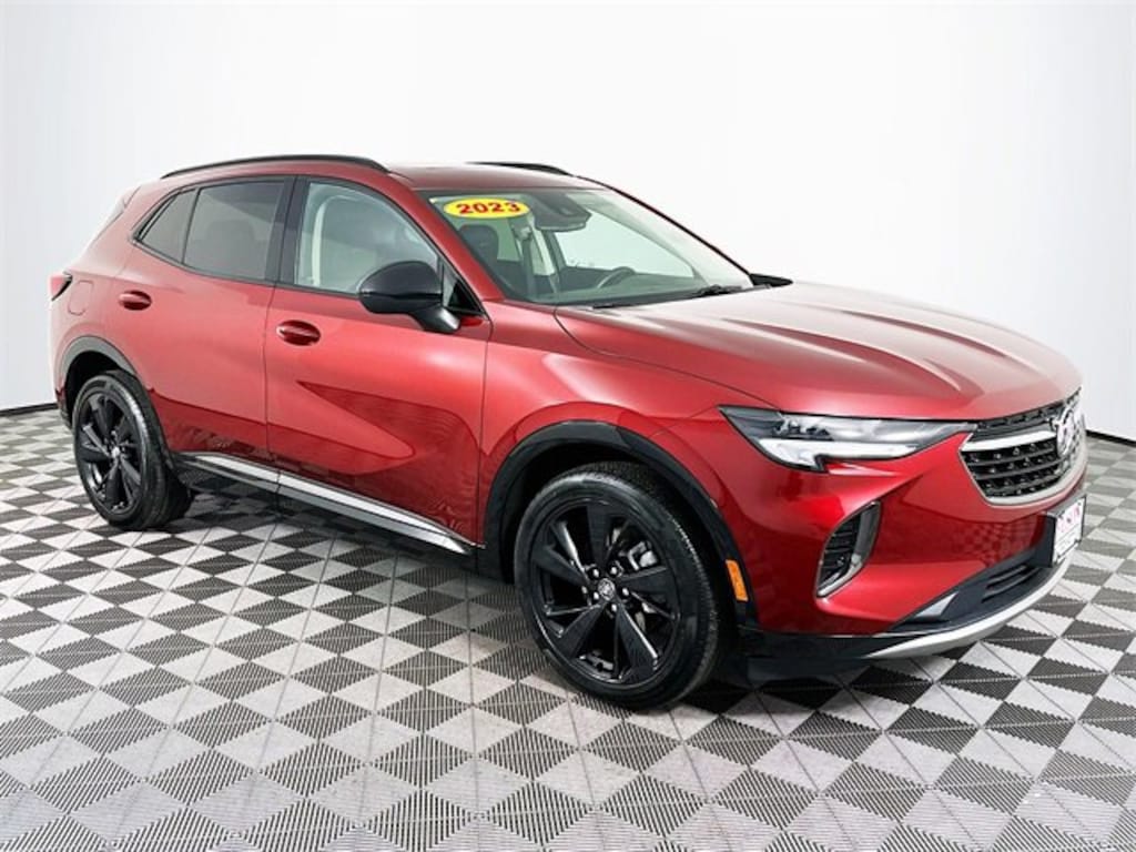 Preferred Equipment Group 1SL, Sport Touring Package (Black Roof Rails, Body-Color Door Handles, Carpeted Front & Rear Floor Mats, Lower Trim/Wheel Arch Moldings, Rear Cargo Compartment Cover, Sport Alloy Pedals, and Wheels: 20 Aluminum w/Dark Finish), 3.47 Final Drive Axle Ratio, 4-Wheel Disc Brakes, 7 Speakers, 7-Speaker Audio System Feature w/Amplifier, 8-Way Power Driver Seat Adjuster, ABS brakes, Air Conditioning, Alloy wheels, AM/FM radio: SiriusXM, Apple CarPlay/Android Auto, Auto High-beam Headlights, Auto-dimming door mirrors, Auto-dimming Rear-View mirror, Automatic Emergency Braking, Automatic temperature control, Brake assist, Bumpers: body-color, Compass, Delay-off headlights, Driver door bin, Driver vanity mirror, Dual front impact airbags, Dual front side impact airbags, Electronic Stability Control, Emergency communication system: OnStar and Buick connected services capable, Following Distance Indicator, Forward Collision Alert, Four wheel independent suspension, Front anti-roll bar, Front Bin Center Console USB Ports, Front Bucket Seats, Front Center Armrest, Front dual zone A/C, Front Passenger 8-Way Power Seat Adjuster, Front Pedestrian Braking, Front reading lights, Fully automatic headlights, Heated door mirrors, Heated Driver & Front Passenger Seats, Heated front seats, Heated steering wheel, Illuminated entry, IntelliBeam Headlamp Control w/Auto High Beam, Knee airbag, Lane Keep Assist w/Lane Departure Warning, Low tire pressure warning, Memory seat, Occupant sensing airbag, Outside temperature display, Overhead airbag, Overhead console, Panic alarm, Passenger door bin, Passenger vanity mirror, Perforated Leather-Appointed Seat Trim, Power door mirrors, Power driver seat, Power Liftgate, Power Panoramic Tilt-Sliding Moonroof, Power passenger seat, Power steering, Power windows, Premium audio system: Buick Infotainment System, Radio data system, Radio: Buick Infotainment System AM/FM Stereo, Rear anti-roll bar, Rear reading lights, Rear seat center armrest, Rear window defroster, Rear window wiper, Remote keyless entry, Security system, SiriusXM Radio, Speed control, Split folding rear seat, Spoiler, Steering wheel mounted audio controls, Telescoping steering wheel, Tilt steering wheel, Traction control, Trip computer, USB Charging-Only Ports, Variably intermittent wipers, Wheels: 18 Machined Aluminum w/Light Silver Met, and Wireless Apple CarPlay/Wireless Android Auto. Clean CARFAX. CARFAX One-Owner. Cinnabar Metallic Buick 2023 Envision Essence