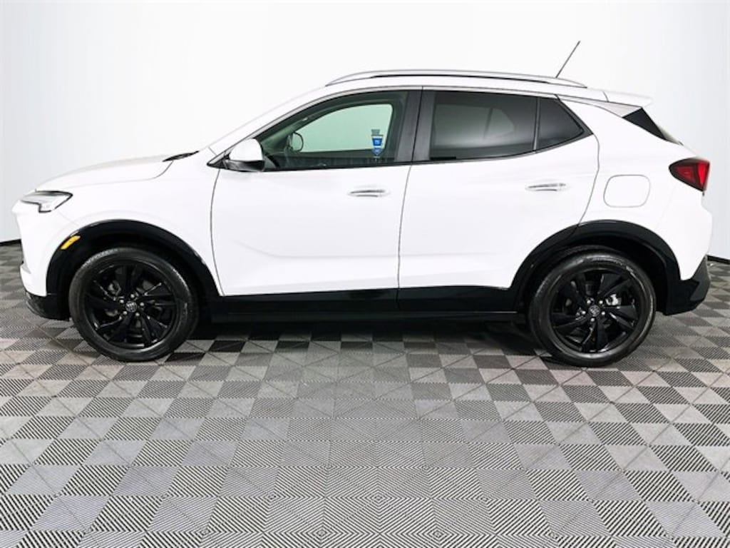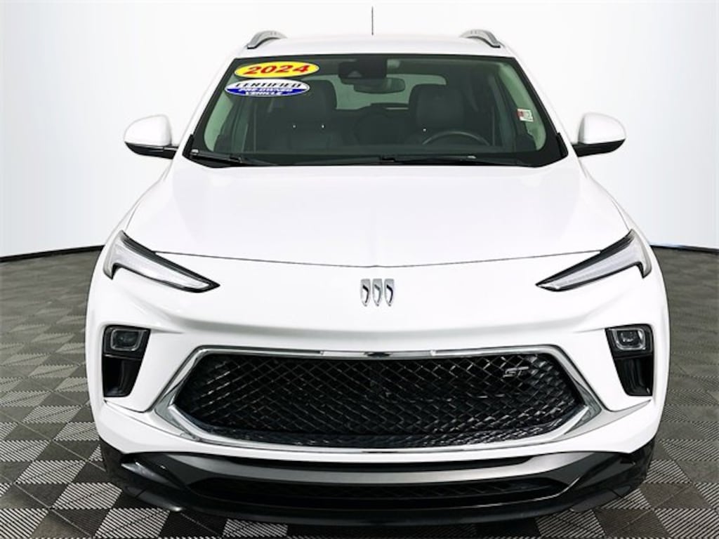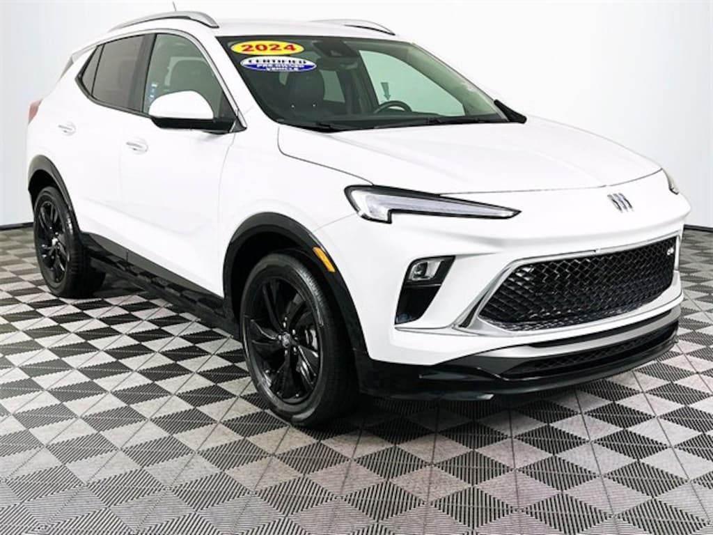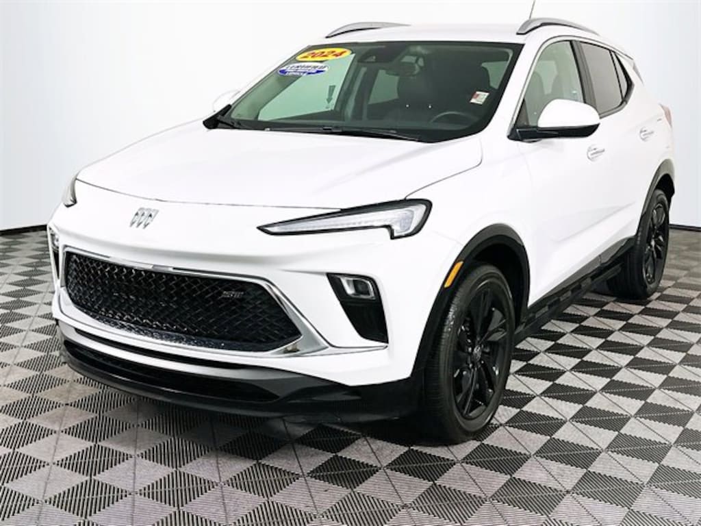 Preferred Equipment Group 1SD, 2 USB Ports (1 Type-A, 1 Type-C), 4-Way Manual Passenger Seat Adjuster, 4-Wheel Disc Brakes, 5.45 Final Drive Axle Ratio, 6 Speakers, 6-Way Manual Driver Seat Adjuster, ABS brakes, Air Conditioning, Alloy wheels, AM/FM radio: SiriusXM, Auto High-beam Headlights, Automatic temperature control, Brake assist, Bumpers: body-color, Compass, Delay-off headlights, Deleted 3 Years of OnStar Remote Access, Driver door bin, Driver vanity mirror, Dual front impact airbags, Dual front side impact airbags, Electronic Stability Control, Emergency communication system: OnStar and Buick connected services capable, Enhanced Performance 6-Speaker System, Front anti-roll bar, Front Bucket Seats, Front Center Armrest, Front reading lights, Front wheel independent suspension, Fully automatic headlights, Heated door mirrors, Illuminated entry, Knee airbag, Leatherette Seat Trim, Low tire pressure warning, Occupant sensing airbag, Outside temperature display, Overhead airbag, Overhead console, Panic alarm, Passenger door bin, Passenger vanity mirror, Power door mirrors, Power steering, Power windows, Radio data system, Radio: Audio System w/AM/FM, Rear reading lights, Rear side impact airbag, Rear window defroster, Rear window wiper, Remote keyless entry, Ride & Handling Suspension, Security system, SiriusXM, Speed control, Speed-sensing steering, Split folding rear seat, Spoiler, Sport steering wheel, Steering wheel mounted audio controls, Tachometer, Telescoping steering wheel, Tilt steering wheel, Traction control, Trip computer, Variably intermittent wipers, Wheels: 18 Gloss Black Aluminum, and Wireless Apple CarPlay/Wireless Android Auto. Clean CARFAX. CARFAX One-Owner. Summit White Buick 2024 Encore GX Sport Touring