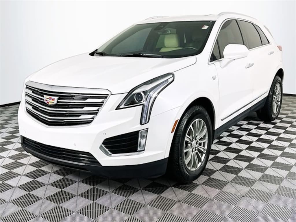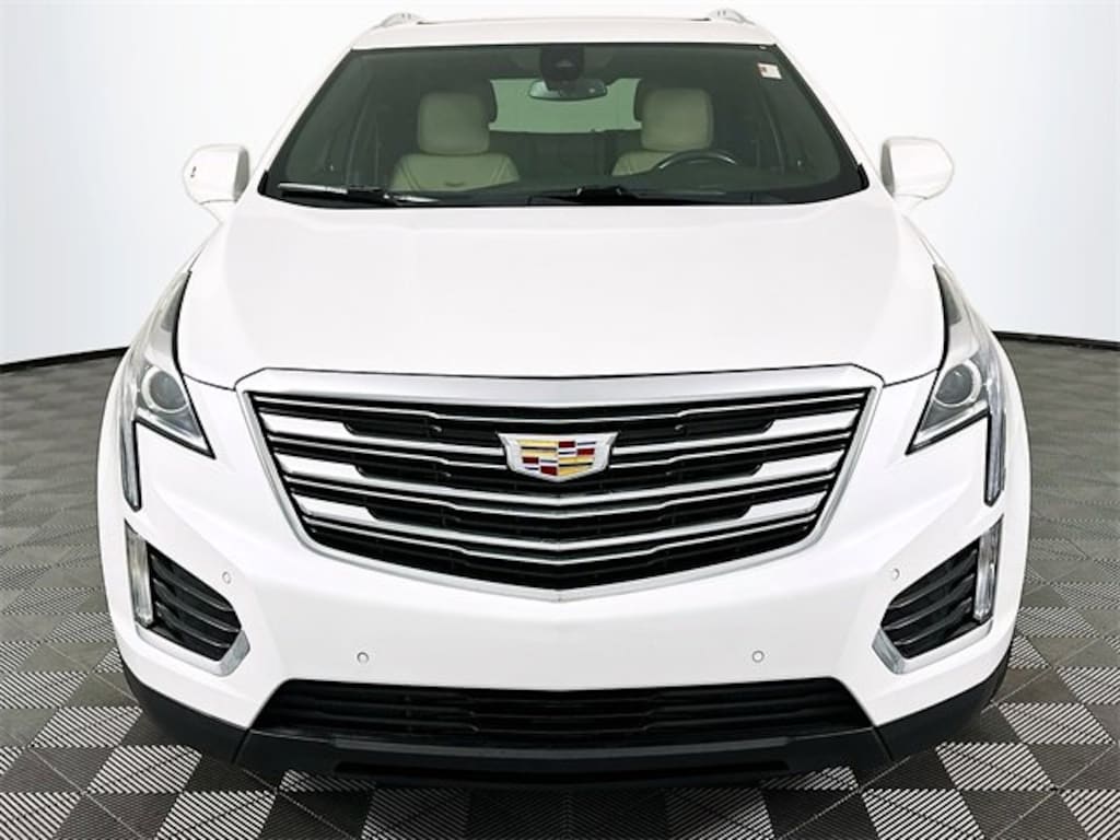 Driver Awareness Package (Following Distance Indicator, Forward Collision Alert, Front Pedestrian Detection, IntelliBeam Headlamps, Lane Keep Assist w/ Lane Departure Warning, Low Speed Front Automatic Braking, and Safety Alert Seat), Preferred Equipment Group 1SC (Automatic Dual-Zone Climate Control and Body-Color Heated Power-Adjustable Outside Mirrors), 18 x 8 Bright Machined Finish Aluminum Wheels, 2-Way Power Driver Lumbar Control Seat Adjuster, 2-Way Power Passenger Lumbar Control Seat Adjuster, 3.20 Axle Ratio, 4-Wheel Disc Brakes, 4-Wheel Independent Suspension, 8 Speakers, 8-Way Power Front Passenger Seat Adjuster, ABS brakes, Air Conditioning, Alloy wheels, AM/FM radio: SiriusXM, Apple CarPlay/Android Auto, Auto-dimming door mirrors, Auto-dimming Rear-View mirror, Automatic temperature control, Bodyside moldings, Bose Premium 8-Speaker Audio System Feature, Bose Studio Surround Sound w/14-Speakers, Brake assist, Bumpers: body-color, Child-Seat-Sensing Airbag, Compass, Delay-off headlights, Driver & Front Passenger Heated Seats, Driver door bin, Driver vanity mirror, Dual front impact airbags, Dual front side impact airbags, Electronic Stability Control, Emergency communication system: OnStar Directions & Connections, Exterior Parking Camera Rear, Four wheel independent suspension, Front anti-roll bar, Front Bucket Seats, Front Center Armrest, Front dual zone A/C, Front reading lights, Full Leather Seats w/Mini Perforated Inserts, Fully automatic headlights, Garage door transmitter, Genuine wood door panel insert, Heated door mirrors, Heated front seats, Heated steering wheel, Illuminated entry, Leather steering wheel, Low tire pressure warning, Memory seat, Occupant sensing airbag, Outside temperature display, Overhead airbag, Overhead console, Panic alarm, Passenger door bin, Passenger vanity mirror, Power door mirrors, Power driver seat, Power Liftgate, Power moonroof: UltraView, Power passenger seat, Power steering, Power windows, Premium audio system: Cadillac CUE, Radio data system, Radio: Cadillac CUE Info & Media Control System, Radio: Cadillac CUE Info & Media Control w/Nav, Rain sensing wipers, Rear anti-roll bar, Rear reading lights, Rear seat center armrest, Rear window defroster, Rear window wiper, Remote keyless entry, Roof rack: rails only, SiriusXM Satellite Radio, Speed control, Speed-sensing steering, Split folding rear seat, Spoiler, Steering wheel memory, Steering wheel mounted audio controls, Tachometer, Telescoping steering wheel, Tilt steering wheel, Traction control, Trip computer, Variably intermittent wipers, and Voltmeter. Crystal White Tricoat Cadillac 2017 XT5 Luxury