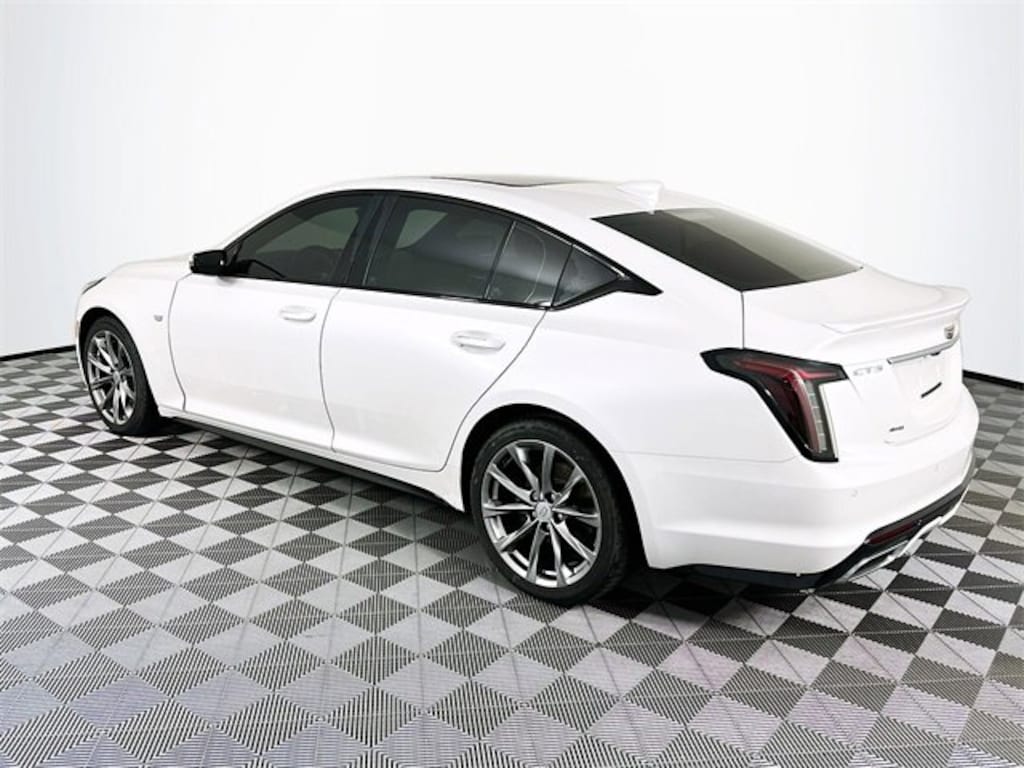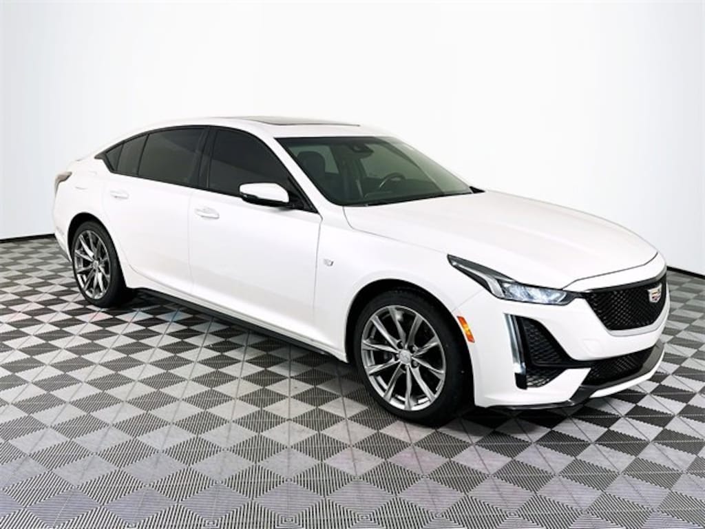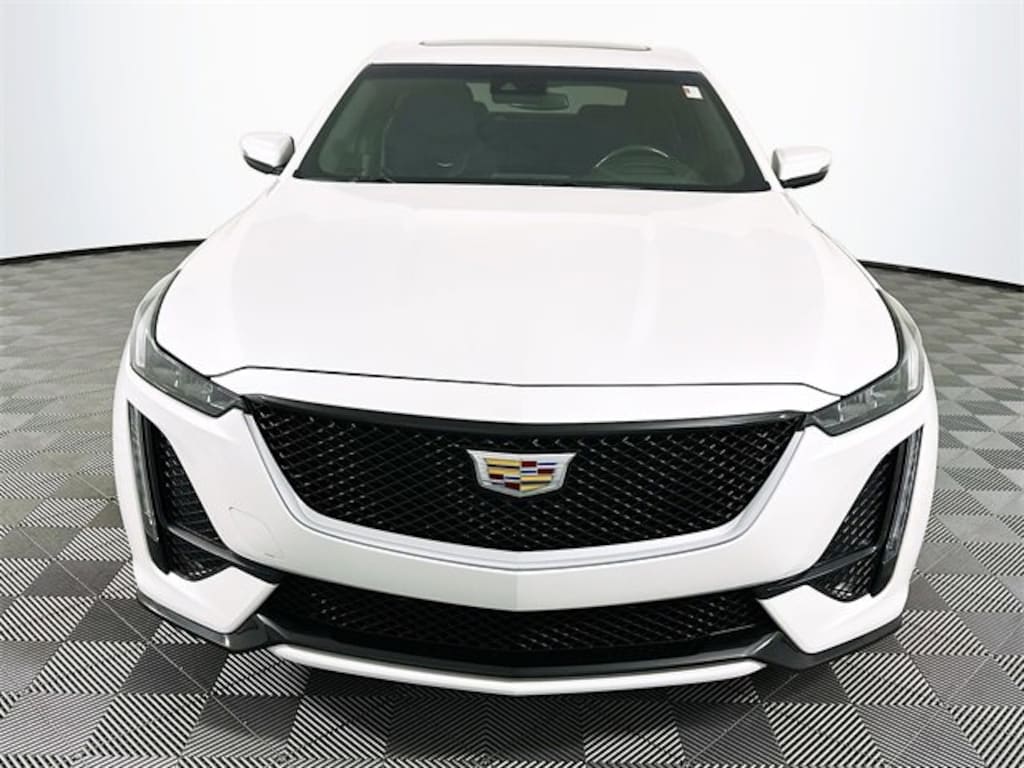 Climate Package (Automatic Heated Steering Wheel, Driver Power Lumbar Massage Seat, Front Passenger Power Lumbar Massage Seat, Heated Driver & Front Passenger Seats, and Ventilated Driver & Front Passenger Seats), Driver Awareness Plus Package (8 Diagonal Color Reconfigurable DIC Display, Following Distance Indicator, Head-Up Display, IntelliBeam Automatic High Beam On/Off, and Lane Keep Assist w/Lane Departure Warning), Lighting Package (Front Cornering Lamps, Illuminating Door Handles, and Illuminating Front Sill Plates), Navigation & Bose Premium Audio Package, Preferred Equipment Group 1SE (Automatic Emergency Braking, Body-Color Heated Pwr-Adjustable Outside Mirrors, Dual Diagonal Color Driver Information Center, HD Rear Vision Camera, Inside Rear-View Auto-Dimming Mirror, LED Reflective Windshield Alert, Manual Tilt & Telescoping Steering Column, and Rear Park Assist), Radio: Cadillac User Experience w/Embedded Nav (Bose Performance Series Premium 15-Speaker System and SiriusXM Radio), 4-Wheel Disc Brakes, 9 Speakers, ABS brakes, Air Conditioning, All-Weather Cargo Mat (LPO), Alloy wheels, AM/FM radio: SiriusXM, Apple CarPlay/Android Auto, Auto-dimming door mirrors, Auto-dimming Rear-View mirror, Automatic Stop/Start w/Disable, Automatic temperature control, Brake assist, Bumpers: body-color, Chrome Wheel Locks (LPO), Compass, Delay-off headlights, Driver 4-Way Power Lumbar Seat Adjuster, Driver door bin, Driver vanity mirror, Dual front impact airbags, Dual front side impact airbags, Electronic Stability Control, Emergency communication system: OnStar and Cadillac connected services capable, Exterior Parking Camera Rear, Four wheel independent suspension, Front anti-roll bar, Front Bucket Seats, Front Center Armrest, Front dual zone A/C, Front Passenger 4-Way Power Lumbar Seat Adjuster, Front reading lights, Fully automatic headlights, Garage door transmitter, HD Radio, Heated door mirrors, Illuminated entry, Knee airbag, Leather steering wheel, Leatherette Seating Surfaces, Low tire pressure warning, Memory seat, Occupant sensing airbag, Outside temperature display, Overhead airbag, Overhead console, Panic alarm, Passenger door bin, Passenger vanity mirror, Power door mirrors, Power driver seat, Power passenger seat, Power steering, Power windows, Premium 9-Speaker Audio System Feature, Radio data system, Radio: Cadillac User Experience, Rain sensing wipers, Rear anti-roll bar, Rear reading lights, Rear seat center armrest, Rear window defroster, Remote keyless entry, Speed control, Speed-sensing steering, Split folding rear seat, Spoiler, Steering wheel mounted audio controls, Tachometer, Telescoping steering wheel, Tilt steering wheel, Traction control, Trip computer, Turn signal indicator mirrors, UltraView Dual Pane Sunroof, Variably intermittent wipers, Voltmeter, and Wheels: 19 Premium Painted Alloy w/Pearl Nickel Finish. Clean CARFAX. CARFAX One-Owner. Crystal White Tricoat Cadillac 2020 CT5 Sport