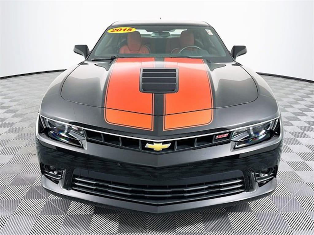 Inferno Orange Interior Accent Trim Package, Orange Rally Stripe Package, Preferred Equipment Group 2SS (2 Front Cup Holders, 3-Spoke Leather-Wrapped Steering Wheel, 4-Wheel Antilock 4-Wheel Disc Brakes, Analog Instrumentation, Auxiliary Multi-Function Gauges, Boston Acoustics Premium 9-Speaker Audio System, Carpeted Front Floor Mats, Color Display Driver Information Center, Electric Rear-Window Defogger, Electronic Cruise Control, Head-Up Display, Heated Driver & Front Passenger Seats, LATCH System, Leather-Wrapped Shift Knob, Maintenance-Free Battery, Manual Rake & Telescopic Steering Column, OnStar 6 Months Directions & Connections Plan, Power Programmable Door Locks, Remote Keyless Entry, SiriusXM Satellite Radio, StabiliTrak, Stainless-Steel Dual-Outlet Exhaust, Steering Wheel Mounted Audio Controls, Tire Sealant & Inflator Kit, Universal Home Remote, and USB Port Audio System Feature), RS Package (Body-Color Roof Ditch Molding, High-Intensity Discharge Headlamps, and Separate Daytime Running Lamps), 20 x 8 Front & 20 x 9 Rear Aluminum Wheels, 4-Wheel Disc Brakes, 6-Way Power Driver Adjuster w/Power Recline, 6-Way Power Fr Passenger Adjuster w/Power Recline, 9 Speakers, ABS brakes, Air Conditioning, Alloy wheels, AM/FM radio: SiriusXM, Auto-dimming door mirrors, Auto-dimming Rear-View mirror, Brake assist, Bumpers: body-color, Cargo Net, Compass, Delay-off headlights, Driver door bin, Driver vanity mirror, Dual front impact airbags, Dual front side impact airbags, Dual Mode Performance Exhaust, Electronic Stability Control, Emergency communication system: OnStar Directions & Connections, Exterior Parking Camera Rear, Four wheel independent suspension, Front anti-roll bar, Front Bucket Seats, Front Center Armrest, Front fog lights, Front Leather Seating Surfaces, Front reading lights, Front Sport Bucket Seats, Fully automatic headlights, Garage door transmitter, Heads-Up Display, Heated door mirrors, Heated front seats, Illuminated entry, Leather Shift Knob, Low tire pressure warning, Occupant sensing airbag, Outside temperature display, Overhead airbag, Panic alarm, Passenger door bin, Passenger vanity mirror, Performance Short-Throw Shifter, Power door mirrors, Power driver seat, Power passenger seat, Power steering, Power Sunroof w/Express-Open & Venting, Power windows, Premium audio system: Chevrolet MyLink, Premium Carpeted Floor Mats, Radio data system, Radio: AM/FM Stereo w/Color Touch, Rear anti-roll bar, Rear Parking Sensors, Rear Spoiler, Rear window defroster, Remote keyless entry, Security system, Speed control, Speed-sensing steering, Spoiler, Steering wheel mounted audio controls, Tachometer, Telescoping steering wheel, Tilt steering wheel, Traction control, Trip computer, Variably intermittent wipers, Voltmeter, and Wheel Lock Kit (LPO) Black Chevrolet 2015 Camaro SS 2SS6.2L V8 SFI RWD 6-Speed Manual with SS PerformanceOdometer is 12457 miles below market average!Awards:* JD Power Initial Quality Study * 2015 KBB.com Best Buy Awards FinalistReviews:* If youâre looking for something as thrilling to drive as it is to showoff, the 2015 Chevy Camaro coupe or convertible can get the job done. Even the most basic model looks lean and mean, a testament to the power of the Camaroâs design. Source: KBB.com* Strong acceleration with any engine; head-turning looks; capable handling. Source: EdmundsWe want to hear you say: I found it at Fuson!