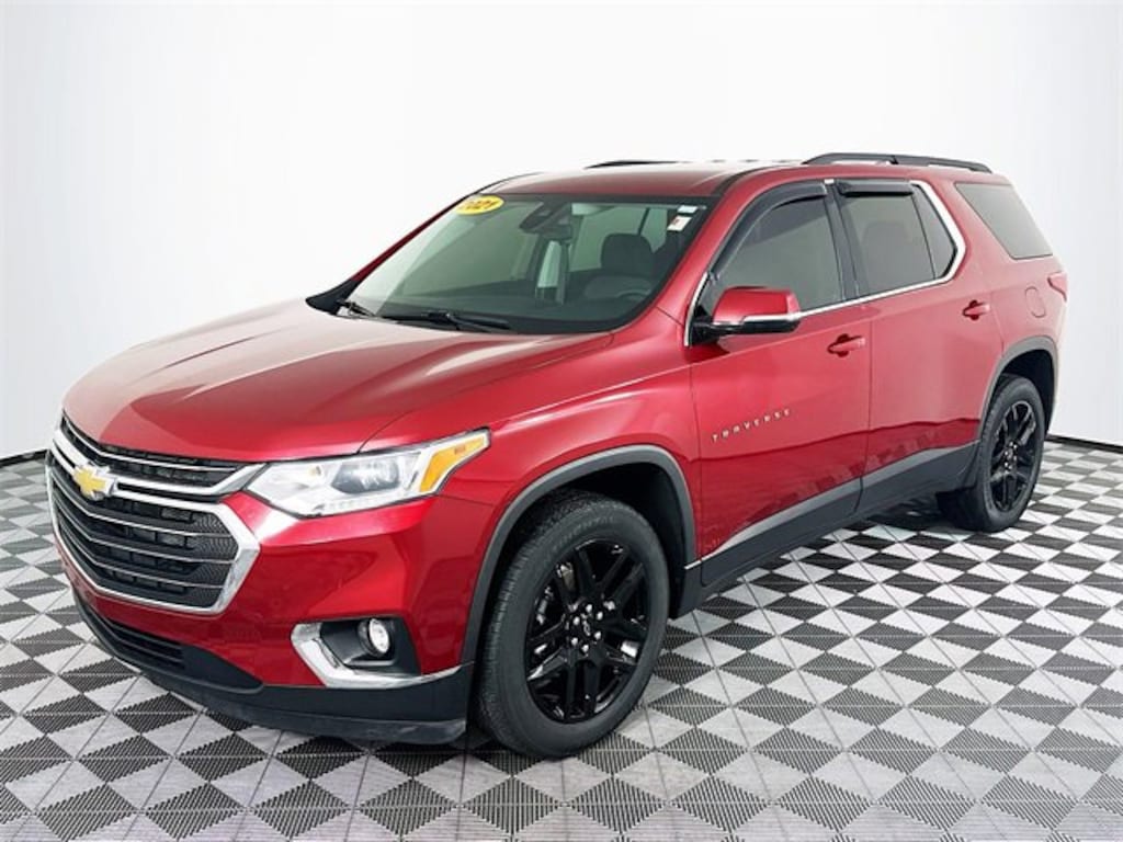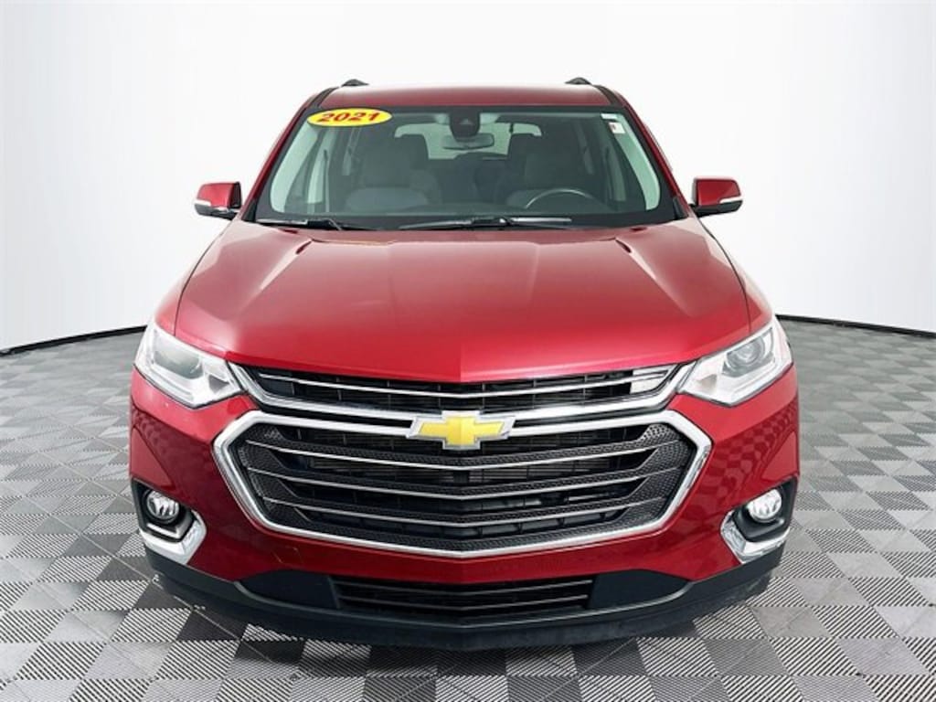 Chevy Safety Assist (Automatic Emergency Braking, Automatic Heated Steering Wheel, Following Distance Indicator, Forward Collision Alert, Front Pedestrian Braking, IntelliBeam Auto High Beam Control Headlamps, and Lane Keep Assist w/Lane Departure Warning), Convenience & Driver Confidence Package (4.2 Multi-Color Enhanced Driver Instrument Display, Heated Driver & Front Passenger Seats, Lane Change Alert w/Side Blind Zone Alert, Radio: Chevrolet Infotainment 3 Plus System, Rear Cross Traffic Alert, Rear Park Assist w/Audible Warning, Rear Power Liftgate, Remote Start, SiriusXM w/360L, and Universal Home Remote), Floor Liner Package (LPO) (1st & 2nd Row All-Weather Floor Liner (LPO), 3rd Row All-Weather Floor Liner (LPO), and Integrated Cargo Liner (LPO)), Preferred Equipment Group 1LT, Trailering Equipment (Heavy-Duty Cooling System and Trailering Assist Guidelines), 3.49 Axle Ratio, 3rd row seats: split-bench, 4-Wheel Disc Brakes, 6 Speakers, 7-Passenger Seating (2-2-3 Seating Configuration), ABS brakes, Air Conditioning, Alloy wheels, AM/FM radio: SiriusXM, Apple CarPlay/Android Auto, Automatic temperature control, Brake assist, Bumpers: body-color, Compass, Delay-off headlights, Driver door bin, Driver vanity mirror, Dual front impact airbags, Dual front side impact airbags, Electronic Stability Control, Emergency communication system: OnStar and Chevrolet connected services capable, Four wheel independent suspension, Front anti-roll bar, Front Bucket Seats, Front Center Armrest, Front dual zone A/C, Front fog lights, Front reading lights, Fully automatic headlights, Heated door mirrors, High-Intensity Discharge Headlights, Hitch Guidance w/Hitch View, Illuminated entry, Leather steering wheel, Low tire pressure warning, Occupant sensing airbag, Outside temperature display, Overhead airbag, Overhead console, Panic alarm, Passenger door bin, Passenger vanity mirror, Power door mirrors, Power driver seat, Power steering, Power windows, Premium Cloth Seat Trim, Radio data system, Radio: Chevrolet Infotainment System AM/FM Stereo, Rear air conditioning, Rear anti-roll bar, Rear reading lights, Rear window defroster, Rear window wiper, Remote keyless entry, Roof rack: rails only, Security system, SiriusXM Radio, Speed control, Speed-sensing steering, Spoiler, Steering wheel mounted audio controls, Tachometer, Telescoping steering wheel, Tilt steering wheel, Traction control, Trip computer, Turn signal indicator mirrors, Variably intermittent wipers, Voltmeter, Wheels: 18 Bright Silver Painted Aluminum, Wheels: 20 Gloss Black Painted Aluminum (LPO), and Wheels: 20 x 8 Aluminum Transit. CARFAX One-Owner. Cajun Red Tintcoat Chevrolet 2021 Traverse LT 1LT