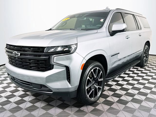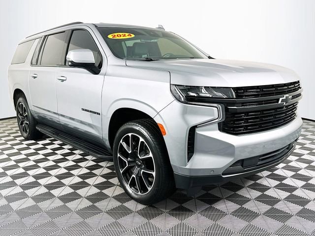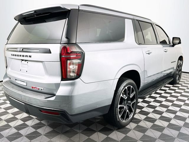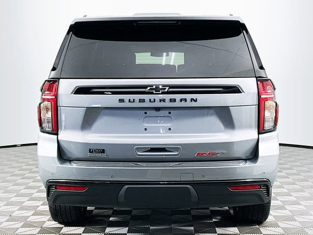 Advanced Trailering Package (Hitch View w/Pan/Zoom Image Adjustment, Integrated Trailer Brake Controller, and Smart Trailer Integration Indicator), Driver Alert Package (Lane Change Alert w/Side Blind Zone Alert and Rear Cross Traffic Alert), Luxury Package (2nd Row Pwr Release 60/40 Split-Folding Bench Seat, 3rd Row 60/40 Power-Folding Split-Bench, Adaptive Cruise Control, Enhanced Automatic Emergency Braking, HD Surround Vision, Heated 2nd Row Outboard Seats, Heated Steering Wheel, Memory Settings, Outside Heated Power-Adjustable Mirrors, Power Tilt & Telescopic Steering Column, and Rear Pedestrian Alert), Max Trailering Package (2-Speed Active Electronic AutoTrac Transfer Case and Extra Capacity Cooling System), Preferred Equipment Group 1SP (10-Way Power Driver & Passenger Seat Adjusters, 1st & 2nd Row Color-Keyed Carpeted Floor Mats, Auto-Dimming Inside Rear-View Mirror, Bose 9-Speaker Stereo Audio System Feature, Bright Front & Rear Door Sill Plates, Color-Keyed Carpeting Floor Covering, Driver & Front Outboard Passenger Airbags, Enhanced Driver Information Center, Floor Console w/Storage Area, Hands-Free Rear Power Programmable Liftgate, Heated Driver & Front Passenger Seats, Infotainment Display, LED Daytime Running Lamps, Memory Settings For Driver, Remote Start, SiriusXM w/360L, Universal Home Remote, Wireless Charging, and Wrapped Steering Wheel), 1.5 kW Heater/Defrost Air System, 250 Amps Alternator, 3.23 Rear Axle Ratio, 3rd row seats: split-bench, 4-Wheel Disc Brakes, 850 Cold-Cranking Amps Battery, 9 Speakers, ABS brakes, Air Conditioning, Alloy wheels, AM/FM radio: SiriusXM with 360L, Apple CarPlay/Android Auto, Auto High-beam Headlights, Auto-dimming Rear-View mirror, Automatic temperature control, Brake assist, Bumpers: body-color, Compass, Delay-off headlights, Diesel B20 Fuel, Driver door bin, Driver vanity mirror, Dual front impact airbags, Dual front side impact airbags, Dual-Pane Power Panoramic Sunroof, Electronic Stability Control, Emergency communication system: OnStar and Chevrolet connected services capable, Engine Block Heater, Four wheel independent suspension, Front anti-roll bar, Front Bucket Seats, Front Center Armrest, Front dual zone A/C, Front reading lights, Fully automatic headlights, Garage door transmitter, Heated door mirrors, Heated front seats, Illuminated entry, Low tire pressure warning, Memory seat, Navigation System, Occupant sensing airbag, Outside temperature display, Overhead airbag, Overhead console, Panic alarm, Passenger door bin, Passenger vanity mirror, Perforated Leather Seating Surfaces, Power door mirrors, Power driver seat, Power Liftgate, Power passenger seat, Power Release 2nd Row Bucket Seats, Power steering, Power windows, Premium audio system: Chevrolet Infotainment 3 Premium, Premium Smooth Ride Suspension, Radio: Chevrolet Infotainment 3 Premium System, Rain sensing wipers, Rear air conditioning, Rear anti-roll bar, Rear reading lights, Rear seat center armrest, Rear Seat Media System, Rear window defroster, Rear window wiper, Remote keyless entry, Roof rack: xxxxxx, Security system, Speed control, Speed-sensing steering, Split folding rear seat, Spoiler, Steering wheel mounted audio controls, Tachometer, Telescoping steering wheel, Tilt steering wheel, Traction control, Trip computer, Upper & Lower Active Aero Shutters, Variably intermittent wipers, Voltmeter, Wheel Locks (Set of 4) (LPO), and Wheels: 22 x 9 Bright Machined. Clean CARFAX. CARFAX One-Owner. Sterling Gray Metallic Chevrolet 2024 Suburban RST