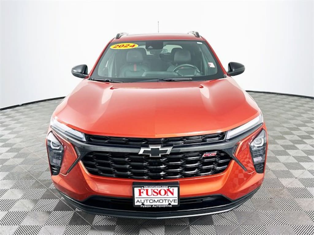Driver Confidence Package (Adaptive Cruise Control, Lane Change Alert w/Side Blind Zone Alert, and Rear Cross-Traffic Alert), License Plate Front Mounting Package, Preferred Equipment Group 2RS, Sunroof Package (Power Sliding Glass Sunroof w/Manual Shade and Wireless Charging), 2-Way Adjustable Front Head Restraints, 3.50 Final Drive Axle Ratio, 4-Way Manual Front Passenger Seat Adjuster, 4-Wheel Disc Brakes, 6 Speakers, 6-Speaker Audio System Feature, 6-Way Manual Driver Seat Adjuster, ABS brakes, Air Conditioning, Alloy wheels, AM/FM radio: SiriusXM, Auto High-beam Headlights, Automatic temperature control, Brake assist, Bumpers: body-color, Compass, Delay-off headlights, Driver door bin, Driver vanity mirror, Dual front impact airbags, Dual front side impact airbags, Electronic Stability Control, Emergency communication system: OnStar and Chevrolet connected services capable, Evotex Seat Trim, Exterior Parking Camera Rear, Front & Rear All-Weather Floor Liners (LPO), Front anti-roll bar, Front Bucket Seats, Front Center Armrest, Front reading lights, Front wheel independent suspension, Fully automatic headlights, Heated door mirrors, Heated Driver & Front Passenger Seats, Heated front seats, Heated steering wheel, Illuminated entry, Jet Black Cargo Liner (LPO), Low tire pressure warning, Occupant sensing airbag, Outside temperature display, Overhead airbag, Overhead console, Panic alarm, Passenger door bin, Passenger vanity mirror, Power door mirrors, Power steering, Power windows, Premium audio system: Chevrolet Infotainment 3, Radio data system, Radio: Audio System w/AM/FM, Rear Park Assist (DISC), Rear window defroster, Rear window wiper, Remote keyless entry, Security system, SiriusXM, Speed control, Split folding rear seat, Spoiler, Sport steering wheel, Steering wheel mounted audio controls, Tachometer, Telescoping steering wheel, Tilt steering wheel, Traction control, Trip computer, Variably intermittent wipers, and Wheels: 19 Black-Painted Machined Aluminum. Clean CARFAX. Cayenne Orange Metallic Chevrolet 2024 Trax 2RS1.2L Ecotec Turbo DOHC DI w/VVT FWD 6-Speed Automatic28/32 City/Highway MPGAwards:* Car and Driver 10 BestCar and Driver, January 2017.We want to hear you say: I found it at Fuson!