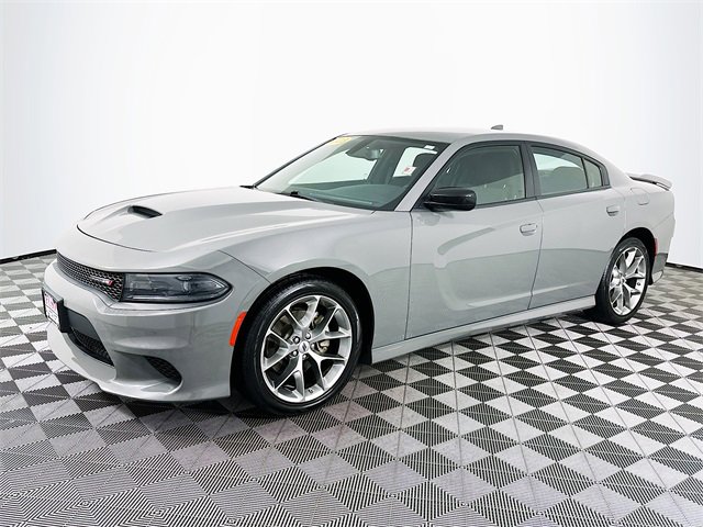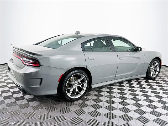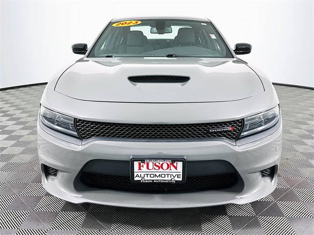 Quick Order Package 2EH, Black Cloth, 1-Yr SiriusXM Guardian Trial, 2-Piece Shark Fin Antenna, 4-Wheel Disc Brakes, 4G LTE Wi-Fi Hot Spot, 6 Speakers, 8.4 Touchscreen Display, ABS brakes, Air Conditioning, Alloy wheels, AM/FM radio: SiriusXM, Anti-whiplash front head restraints, Apple CarPlay, Apple CarPlay/Android Auto, Auto-dimming Rear-View mirror, Automatic temperature control, Brake assist, Bumpers: body-color, Cloth Performance Seats, Compass, Delay-off headlights, Driver door bin, Driver vanity mirror, Dual front impact airbags, Dual front side impact airbags, Electronic Stability Control, Emergency communication system: SiriusXM Guardian, For Details, Visit DriveUconnect.com, Four wheel independent suspension, Front anti-roll bar, Front Bucket Seats, Front Center Armrest, Front dual zone A/C, Front License Plate Bracket, Front reading lights, Fully automatic headlights, Garage door transmitter: HomeLink, Google Android Auto, GPS Antenna Input, HD Radio, Heated door mirrors, Illuminated entry, Integrated Center Stack Radio, Integrated Voice Command w/Bluetooth, Knee airbag, Leather Shift Knob, Low tire pressure warning, Manufacturer's Statement of Origin, Media Hub (2 USB, AUX), Occupant sensing airbag, Outside temperature display, Overhead airbag, Overhead console, Panic alarm, ParkView Rear Back-Up Camera, Passenger door bin, Passenger vanity mirror, Power 2-Way Driver Lumbar Adjust, Power 8-Way Driver Seat, Power door mirrors, Power driver seat, Power steering, Power windows, Radio: Uconnect 4C w/8.4 Display, Rear anti-roll bar, Rear Armrest w/Cupholder Seat, Rear reading lights, Rear seat center armrest, Rear window defroster, Remote keyless entry, Speed control, Speed-Sensitive Wipers, Split folding rear seat, Spoiler, Steering wheel mounted audio controls, Tachometer, Telescoping steering wheel, Tilt steering wheel, Traction control, Trip computer, USB Host Flip, Variably intermittent wipers, and Wheels: 20 x 8 Satin Carbon PainteD. Clean CARFAX. CARFAX One-Owner. Destroyer Gray Clearcoat Dodge 2023 Charger GT
