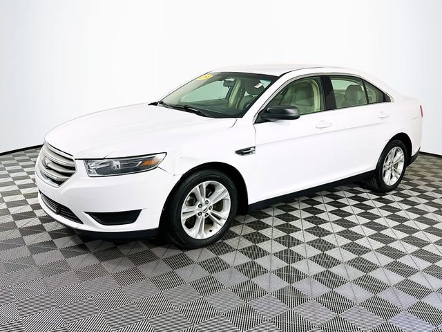 Equipment Group 100A, 4-Wheel Disc Brakes, 6 Speakers, ABS brakes, Air Conditioning, Alloy wheels, AM/FM radio, Brake assist, Bumpers: body-color, CD player, Cloth Front Bucket Seats, Delay-off headlights, Driver door bin, Driver vanity mirror, Dual front impact airbags, Dual front side impact airbags, Electronic Stability Control, Emergency communication system: 911 Assist, Exterior Parking Camera Rear, Four wheel independent suspension, Front anti-roll bar, Front Bucket Seats, Front Center Armrest, Front reading lights, Fully automatic headlights, Illuminated entry, Knee airbag, Low tire pressure warning, Occupant sensing airbag, Overhead airbag, Overhead console, Panic alarm, Passenger door bin, Passenger vanity mirror, Power door mirrors, Power driver seat, Power passenger seat, Power steering, Power windows, Radio data system, Radio: AM/FM Stereo/Single-CD/MP3 Capable, Rear anti-roll bar, Rear reading lights, Rear seat center armrest, Rear window defroster, Remote keyless entry, Speed control, Speed-sensing steering, Speed-Sensitive Wipers, Split folding rear seat, Steering wheel mounted audio controls, SYNC Communications & Entertainment System, Tachometer, Telescoping steering wheel, Tilt steering wheel, Traction control, Trip computer, Variably intermittent wipers, and Wheels: 18 Sparkle Silver-Painted Aluminum. Oxford White Ford 2018 Taurus SE
