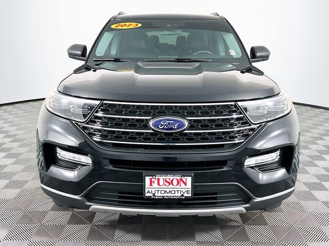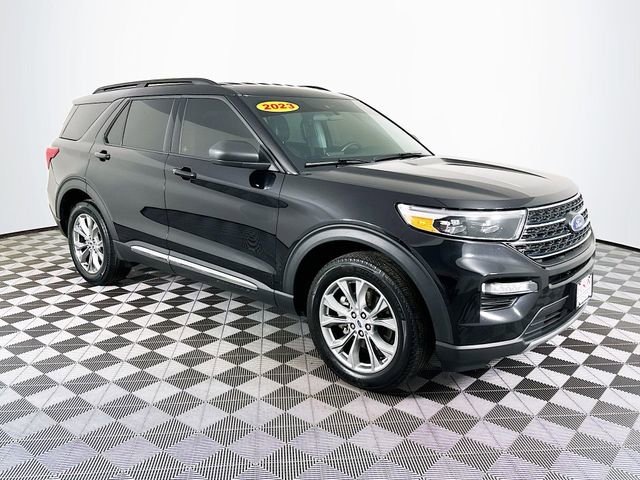 Class IV Trailer Tow Package, Equipment Group 202A (Acoustic-Laminated Front Side Windows, Heated ActiveX Captain's Chairs, Heated Steering Wheel, LED Fog Lamps, Remote Start System, and SecuriCode Keyless Entry Keypad), Ford Co-Pilot360 Assist+ (Evasive Steering Assist, Intelligent Adaptive Cruise Control, Speed Sign Recognition, and Voice-Activated Touchscreen Navigation System), 4WD, 20 Premium Painted Aluminum Wheels, 3.58 Non-Limited-Slip Rear Axle Ratio, 3rd row seats: bench, 4-Wheel Disc Brakes, 4G LTE Wi-Fi Hotspot Credit, 6 Speakers, ABS brakes, Air Conditioning, Alloy wheels, AM/FM radio: SiriusXM, AM/FM Stereo, Auto High-beam Headlights, Automatic temperature control, Brake assist, Bumpers: body-color, Compass, Delay-off headlights, Driver door bin, Driver vanity mirror, Dual front impact airbags, Dual front side impact airbags, Electronic Stability Control, Emergency communication system: SYNC 3 911 Assist, Exterior Parking Camera Rear, FordPass Connect, Four wheel independent suspension, Front anti-roll bar, Front Bucket Seats, Front Center Armrest, Front dual zone A/C, Front reading lights, Fully automatic headlights, Heated door mirrors, Heated front seats, Heated Unique Cloth Captain's Chairs, Illuminated entry, Knee airbag, Leather steering wheel, Low tire pressure warning, Occupant sensing airbag, Outside temperature display, Overhead airbag, Overhead console, Panic alarm, Passenger door bin, Passenger vanity mirror, Power door mirrors, Power driver seat, Power Liftgate, Power passenger seat, Power steering, Power windows, Rear air conditioning, Rear anti-roll bar, Rear Auxiliary Controls Credit, Rear reading lights, Rear window defroster, Rear window wiper, Remote keyless entry, Roof rack: rails only, Security system, Speed control, Speed-sensing steering, Speed-Sensitive Wipers, Split folding rear seat, Spoiler, Steering wheel mounted audio controls, SYNC 3 Communications & Entertainment System, SYNC 3/Apple CarPlay/Android Auto, Tachometer, Telescoping steering wheel, Tilt steering wheel, Traction control, Trip computer, Variably intermittent wipers, and Wheels: 18 5-Spoke Silver-Painted Aluminum. CARFAX One-Owner. Recent Arrival! Agate Black Metallic Ford 2023 Explorer XLT