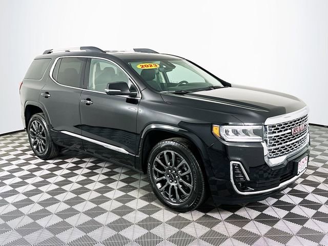 Black Diamond Edition (Wheels: 20 Aluminum Paint w/After Midnight Finish), Denali Technology Package (Adaptive Cruise Control, Enhanced Automatic Emergency Braking, HD Surround Vision, Rear Camera Mirror, and Rear Camera Mirror Washer), Denali Ultimate Package (Dual SkyScape 2-Panel Power Sunroof), Preferred Equipment Group 5SA, Trailering Package (Heavy-Duty Cooling System, Hitch Guidance w/Hitch View, and Trailering Assist Guidelines), FWD, Jet Black Leather, 170 Amp Alternator, 20 Ultra Bright Machined Aluminum Wheels, 3.49 Final Drive Axle Ratio, 3rd row seats: split-bench, 4-Wheel Disc Brakes, 6-Passenger (2-2-2 Seating Configuration), 8 Speakers, 8-Way Power Driver Seat Adjuster, 8-Way Power Passenger Seat Adjuster, ABS brakes, Air Conditioning, Alloy wheels, AM/FM radio: SiriusXM with 360L, Apple CarPlay/Android Auto, Auto High-beam Headlights, Auto-dimming door mirrors, Auto-dimming Rear-View mirror, Automatic temperature control, Bose Premium 8-Speaker Audio System Feature, Brake assist, Bumpers: body-color, Compass, Delay-off headlights, Driver door bin, Driver vanity mirror, Dual front impact airbags, Dual front side impact airbags, Electronic Stability Control, Emergency communication system: OnStar and GMC connected services capable, Four wheel independent suspension, Front anti-roll bar, Front Bucket Seats, Front Center Armrest, Front dual zone A/C, Front fog lights, Front License Plate Bracket, Front reading lights, Fully automatic headlights, Garage door transmitter, Heads-Up Display, Heated & Ventilated Driver & Front Passenger Seats, Heated door mirrors, Heated Driver & Front Passenger Seats, Heated front seats, Heated Rear Outboard Seating Positions, Heated rear seats, Heated steering wheel, Illuminated entry, Knee airbag, Low tire pressure warning, Memory seat, Navigation System, Occupant sensing airbag, Outside temperature display, Overhead airbag, Overhead console, Panic alarm, Passenger door bin, Passenger vanity mirror, Perforated Leather-Appointed Seat Trim, Power door mirrors, Power Driver Lumbar Control Seat Adjuster, Power driver seat, Power Liftgate, Power Passenger Lumbar Control Seat Adjuster, Power passenger seat, Power steering, Power windows, Radio data system, Radio: AM/FM 8 Diagonal Multi-Touch Navigation, Rear air conditioning, Rear anti-roll bar, Rear reading lights, Rear window defroster, Rear window wiper, Remote keyless entry, Security system, SiriusXM w/360L, Speed control, Speed-sensing steering, Spoiler, Steering wheel memory, Steering wheel mounted audio controls, Tachometer, Telescoping steering wheel, Tilt steering wheel, Traction control, Trip computer, Turn signal indicator mirrors, Variably intermittent wipers, Ventilated front seats, Voltmeter, and Wireless Apple CarPlay/Wireless Android Auto. Clean CARFAX. CARFAX One-Owner. Ebony Twilight Metallic GMC 2023 Acadia Denali