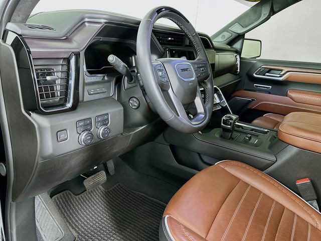 Preferred Equipment Group 5SB (120-Volt Bed Mounted Power Outlet, 120-Volt Interior Power Outlet, 2 Charge/Data USB Ports Inside Center Console, 2 Type-C Charge-Only Rear USB Ports, 2 USB Ports, Auto-Locking Rear Differential, Bed View Camera, Bose Premium Series w/12-Speaker System, Chrome Recovery Hooks, Color-Keyed Carpeting Floor Covering, Deep-Tinted Glass, Electric Rear-Window Defogger, Floor-Mounted Center Console, Front Rain-Sensing Wipers, HD Surround Vision, Heated 2nd Row Outboard Seats, Heated Driver & Front Outboard Passenger Seating, Heavy-Duty Air Filter, High Gloss Black Header w/Signature Denali Grille, Hill Descent Control, Hitch View, In-Vehicle Trailering System App, Integrated Trailer Brake Controller, Keyless Open & Start, LED Cargo Area Lighting, Multicolor 15 Diagonal Head-Up Display, MultiPro Tailgate Audio System by Kicker (LPO), OnStar Services Capable, Perimeter Lighting, Power Door Locks, Power Front Passenger Windows w/Express Up/Down, Power Front Windows w/Driver Express Up/Down, Power Rake & Telescoping Steering Column, Power Rear Windows w/Express Down, Power Sliding Rear Window w/Rear Defogger, Power Sunroof, Push Button Start, Rear Cross Traffic Braking, Rear Pedestrian Detection, Rear Wheelhouse Liners, Remote Vehicle Starter System, SiriusXM w/360L Trial Subscription, Spray-On Pickup Bedliner w/GMC Logo, Steering Wheel Audio Controls, Theft Deterrent System (Unauthorized Entry), Trailer Camera Provisions, Trailer Side Blind Zone Alert, Trailer Tire Pressure Monitor System, Ultrasonic Front & Rear Park Assist, Universal Home Remote, Ventilated Driver & Front Passenger Seats, Wi-Fi Hotspot Capable, and Wireless Charging), Trailering Package (Hitch Guidance), 10-Speed Automatic, 4WD, Alpine Umber Leather, 12 Speakers, 16-Way Power Driver Seat Adjuster w/Lumbar, 16-Way Power Passenger Seat Adjuster w/Lumbar, 170 Amp Alternator, 3.23 Rear Axle Ratio, 4-Wheel Disc Brakes, ABS brakes, Adaptive suspension, Air Conditioning, Alloy wheels, AM/FM radio: SiriusXM with 360L, Apple CarPlay/Android Auto, Auto High-beam Headlights, Auto-dimming door mirrors, Auto-dimming Rear-View mirror, Automatic temperature control, Brake assist, Buckle to Drive, Bumpers: body-color, Carbon Fiber Composite Bed, Compass, Delay-off headlights, Denali Premium Suspension w/Adaptive Ride Control, Driver door bin, Driver Memory, Driver vanity mirror, Dual Active Exhaust, Dual front impact airbags, Dual front side impact airbags, Electronic Stability Control, Emergency communication system: OnStar, Enhanced Automatic Emergency Braking, Following Distance Indicator, Forward Collision Alert, Front anti-roll bar, Front Bucket Seats, Front Center Armrest, Front dual zone A/C, Front fog lights, Front License Plate Kit, Front Pedestrian Braking, Front reading lights, Front wheel independent suspension, Full Grain Leather Seat Trim, Fully automatic headlights, Garage door transmitter, Genuine wood console insert, Genuine wood dashboard insert, Genuine wood door panel insert, Heads-Up Display, Heated door mirrors, Heated front seats, Heated rear seats, Heated steering wheel, Illuminated entry, IntelliBeam Automatic High Beam On/Off, Low tire pressure warning, Memory seat, Navigation System, Occupant sensing airbag, Outside temperature display, Overhead airbag, Overhead console, Panic alarm, Passenger door bin, Passenger vanity mirror, Power door mirrors, Power driver seat, Power moonroof, Power passenger seat, Power steering, Power windows, Radio data system, Radio: Premium GMC Infotainment Audio System, Rain sensing wipers, Rear reading lights, Rear seat center armrest, Rear step bumper, Rear window defroster, Remote keyless entry, Safety Alert Seat, Security system, Speed control, Speed-sensing steering, Split folding rear seat, Steering wheel mounted audio controls, Super Cruise, Tachometer, Telescoping steering wheel, Tilt steering wheel, Traction control, Trip computer, Variably i
