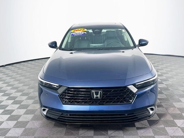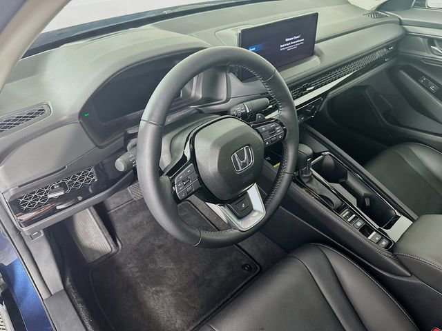 2.0L I4 DOHC 16V, 12 Speakers, 4-Wheel Disc Brakes, ABS brakes, Adaptive Cruise Control: Adaptive Cruise Control (ACC) with Low-Speed Follow, Air Conditioning, Alloy wheels, AM/FM radio, Apple CarPlay/Android Auto, Auto High-beam Headlights, Auto-dimming Rear-View mirror, Automatic temperature control, Blind Spot Information (BSI) System warning, Bose Premium Sound System, Brake assist, Bumpers: body-color, Compass, Delay-off headlights, Driver door bin, Driver vanity mirror, Dual front impact airbags, Dual front side impact airbags, Electronic Stability Control, Emergency communication system: HondaLink, Exterior Parking Camera Rear, Four wheel independent suspension, Front anti-roll bar, Front Bucket Seats, Front Center Armrest, Front dual zone A/C, Front reading lights, Fully automatic headlights, Heads-Up Display, Heated & Ventilated Front Bucket Seats, Heated door mirrors, Heated front seats, Heated rear seats, Heated steering wheel, Illuminated entry, Knee airbag, Lane departure: Lane Keeping Assist System (LKAS) active, Leather Shift Knob, Leather steering wheel, Leather-Trimmed Seat Trim, Low tire pressure warning, Memory seat, Navigation System, Occupant sensing airbag, Outside temperature display, Overhead airbag, Overhead console, Panic alarm, Passenger door bin, Passenger vanity mirror, Power door mirrors, Power driver seat, Power moonroof, Power passenger seat, Power steering, Power windows, Radio data system, Rain sensing wipers, Rear anti-roll bar, Rear reading lights, Rear seat center armrest, Rear side impact airbag, Rear window defroster, Remote keyless entry, Security system, Speed control, Speed-sensing steering, Speed-Sensitive Wipers, Split folding rear seat, Steering wheel mounted audio controls, Telescoping steering wheel, Tilt steering wheel, Traction control, Trip computer, Turn signal indicator mirrors, Variably intermittent wipers, Ventilated front seats, and Wheels: 19 x 8.5J Berlina Black. CARFAX One-Owner. Still Night Pearl Honda 2025 Accord Hybrid Touring