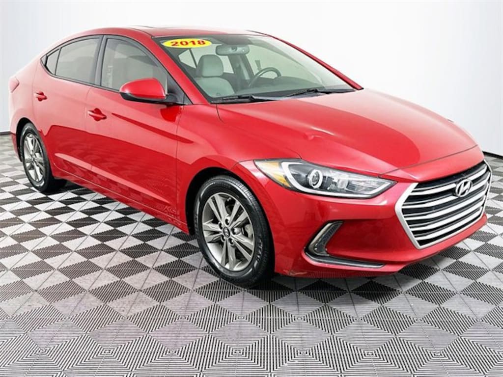 Option Group 01, 16 x 6.5 Alloy Wheels, 4-Wheel Disc Brakes, 6 Speakers, ABS brakes, Air Conditioning, Alloy wheels, AM/FM radio: SiriusXM, Apple CarPlay & Android Auto, Auto-dimming Rear-View mirror, Automatic temperature control, Brake assist, Bumpers: body-color, Cargo Net, Carpeted Floor Mats, Cloth Seat Trim, Compass, Delay-off headlights, Driver door bin, Driver vanity mirror, Dual front impact airbags, Dual front side impact airbags, Electronic Stability Control, Exterior Parking Camera Rear, Front anti-roll bar, Front Bucket Seats, Front Center Armrest, Front dual zone A/C, Front reading lights, Front wheel independent suspension, Fully automatic headlights, Garage door transmitter: HomeLink, Heated door mirrors, Heated Front Bucket Seats, Heated front seats, Illuminated entry, Knee airbag, Low tire pressure warning, Occupant sensing airbag, Outside temperature display, Overhead airbag, Overhead console, Panic alarm, Passenger door bin, Passenger vanity mirror, Power door mirrors, Power moonroof, Power steering, Power windows, Radio: AM/FM/HD/SiriusXM/MP3 Display Audio, Rear window defroster, Remote keyless entry, Reversible Cargo Tray, Security system, Speed control, Speed-sensing steering, Split folding rear seat, Steering wheel mounted audio controls, Tachometer, Telescoping steering wheel, Tilt steering wheel, Traction control, Trip computer, and Variably intermittent wipers. Clean CARFAX. CARFAX One-Owner. Scarlet Red Hyundai 2018 Elantra Value Edition2.0L 4-Cylinder DOHC 16V FWD 6-Speed Automatic with Shiftronic28/37 City/Highway MPGAwards:* 2018 KBB.com 10 Best Sedans Under $25,000 * 2018 KBB.com 10 Coolest New Cars Under $20,000 * 2018 KBB.com 5-Year Cost to Own Awards * 2018 KBB.com 10 Most Awarded BrandsWe want to hear you say: I found it at Fuson!