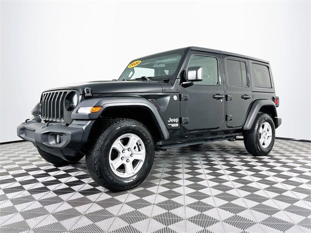 Quick Order Package 22S Sport S (Automatic Headlamps, Deep Tint Sunscreen Windows, Front 1-Touch Down Power Windows, Leather Wrapped Steering Wheel, Power Heated Mirrors, Remote Keyless Entry, Security Alarm, Speed Sensitive Power Locks, Sun Visors w/Illuminated Vanity Mirrors, and Wheels: 17 x 7.5 Tech Silver Aluminum), Technology Group (1-Year SiriusXM Radio Service, 7.0 Touchscreen Display, Air Conditioning w/Auto Temperature Control, Air Filtering, Cluster 7.0 TFT Color Display, GPS Antenna Input, Integrated Center Stack Radio, Radio: Uconnect 4 w/7 Display, SiriusXM Satellite Radio, and USB Host Flip), 3.45 Rear Axle Ratio, 4-Wheel Disc Brakes, 8 Speakers, ABS brakes, Air Conditioning, AM/FM radio, Apple CarPlay (DISC), Aux Battery, Black 3-Piece Hard Top, Brake assist, Cloth Low-Back Bucket Seats, Compass, Delay-off headlights, Driver door bin, Driver vanity mirror, Dual front impact airbags, Dual front side impact airbags, Electronic Stability Control, Freedom Panel Storage Bag, Front anti-roll bar, Front Bucket Seats, Front Center Armrest w/Storage, Front fog lights, Front reading lights, Google Android Auto (DISC), Integrated roll-over protection, Integrated Voice Command w/Bluetooth, Low tire pressure warning, No Soft Top, Non-Lock Fuel Cap w/o Discriminator, Normal Duty Suspension, Occupant sensing airbag, Outside temperature display, ParkView Rear Back-Up Camera, Passenger door bin, Passenger vanity mirror, Power steering, Radio data system, Radio: Uconnect 3 w/5 Display, Rear anti-roll bar, Rear reading lights, Rear Window Defroster, Rear Window Wiper/Washer, Speed control, Split folding rear seat, Steering wheel mounted audio controls, Stop-Start Dual Battery System, Tachometer, Telescoping steering wheel, Tilt steering wheel, Traction control, Trip computer, Variably intermittent wipers, and Wheels: 17 x 7.5 Black Steel Styled. Recent Arrival! Black Clearcoat Jeep 2020 Wrangler Unlimited Sport S