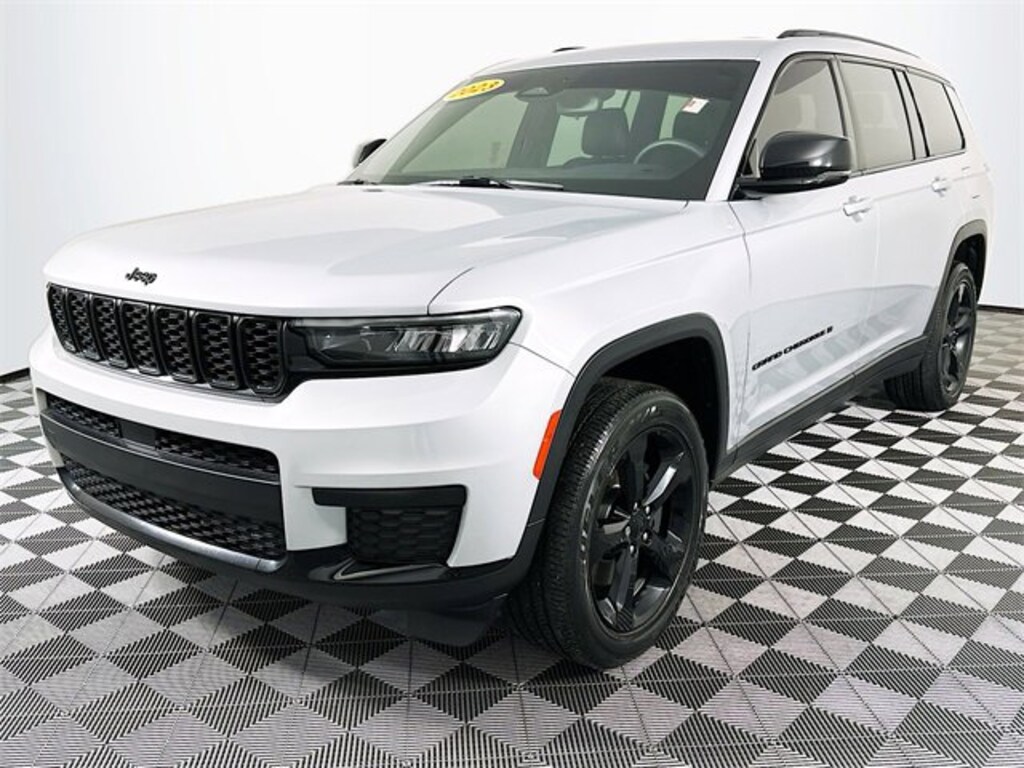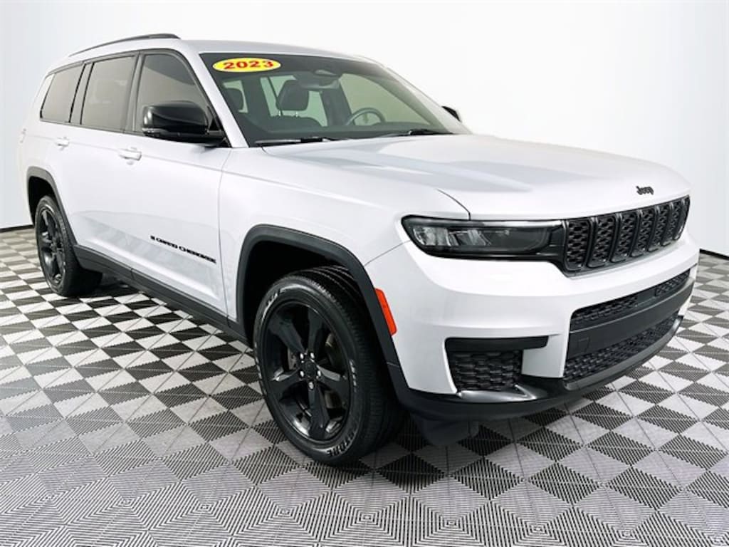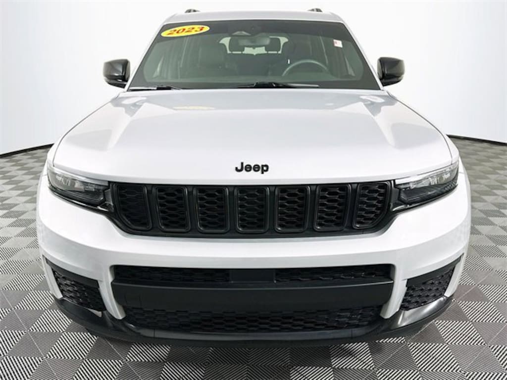 Altitude Appearance Package, Quick Order Package 23B Altitude (115V Auxiliary Power Outlet, 3rd Row Charge-Only USB Ports, Black Headliner, Capri Leatherette/Suede Seats, Delete Laredo Badge, Gloss Black Exterior Accents, Heated Front Seats, Heated Steering Wheel, Molded In Color Black/Gloss Black Roof Rails, Power Liftgate, Rain Sensitive Windshield Wipers, Remote Start System, Selectable Tire Fill Alert, Wheels: 18 x 8.0 Fully Painted Aluminum 1, and Wireless Charging Pad), Trailer Tow Group (B) (DISC) (180 Amp Alternator, Automatic Headlamp Leveling System, Heavy-Duty Engine Cooling, Rear Load Leveling Suspension, and Trailer Hitch Zoom), 3.45 Rear Axle Ratio, 3rd row seats: split-bench, 4-Wheel Disc Brakes, 6 Speakers, ABS brakes, Air Conditioning, Alloy wheels, Anti-whiplash front head restraints, Automatic temperature control, Brake assist, Bumpers: body-color, Cloth Seats, Compass, Delay-off headlights, Driver door bin, Driver vanity mirror, Dual front impact airbags, Dual front side impact airbags, Electronic Stability Control, Emergency communication system, Four wheel independent suspension, Front anti-roll bar, Front Bucket Seats, Front Center Armrest w/Storage, Front dual zone A/C, Front reading lights, Fully automatic headlights, Heated door mirrors, Illuminated entry, Knee airbag, Low tire pressure warning, Manual Fold Seatbacks, Normal Duty Suspension, Occupant sensing airbag, Outside temperature display, Overhead airbag, Overhead console, Panic alarm, ParkView Rear Back-Up Camera, Passenger door bin, Passenger vanity mirror, Power door mirrors, Power driver seat, Power steering, Power windows, Radio data system, Radio: Uconnect 5 w/8.4 Display, Rear air conditioning, Rear anti-roll bar, Rear reading lights, Rear window defroster, Rear window wiper, Reclining 3rd row seat, Remote keyless entry, Security system, Speed control, Speed-Sensitive Wipers, Split folding rear seat, Spoiler, Steering wheel mounted audio controls, Tachometer, Telescoping steering wheel, Tilt steering wheel, Traction control, Trip computer, Variably intermittent wipers, Voltmeter, Wheels: 18 x 8.0 Fully Painted Aluminum, and Wheels: 20 x 8.5 Gloss Black Painted Aluminum. Silver Zynith Jeep 2023 Grand Cherokee L Altitude
