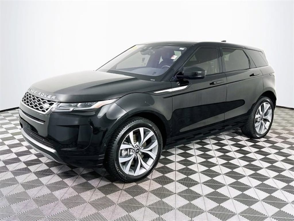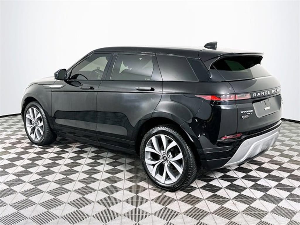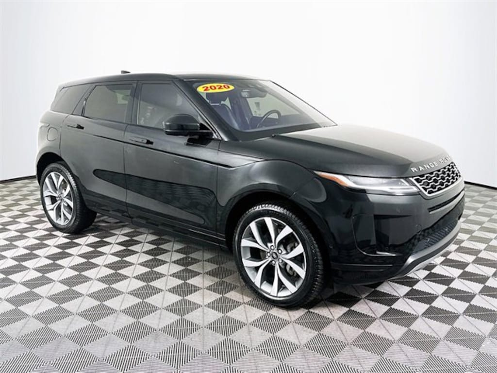 14-Way Front Bucket Seats w/Memory, 180 Watt Range Rover Sound System w/6-Speakers, 20 Wheels, 3.94 Axle Ratio, 4-Wheel Disc Brakes, 6 Speakers, ABS brakes, Air Conditioning, Alloy wheels, Android Auto, Apple CarPlay, Apple CarPlay & Android Auto, Auto High-beam Headlights, Auto-dimming door mirrors, Auto-dimming Rear-View mirror, Automatic temperature control, Brake assist, Bumpers: body-color, Compass, Delay-off headlights, Driver door bin, Driver vanity mirror, Dual front impact airbags, Dual front side impact airbags, Electronic Stability Control, Emergency communication system: InControl Protect, Exterior Parking Camera Rear, Four wheel independent suspension, Front anti-roll bar, Front Bucket Seats, Front Center Armrest, Front dual zone A/C, Front reading lights, Fully automatic headlights, Grained Leather Seat Trim, Heated door mirrors, Illuminated entry, Interactive Driver Display, Leather Shift Knob, Low tire pressure warning, Memory seat, Navigation system: InControl Navigation Pro, Occupant sensing airbag, Outside temperature display, Overhead airbag, Overhead console, Panic alarm, Passenger door bin, Passenger vanity mirror, Power door mirrors, Power driver seat, Power Liftgate, Power passenger seat, Power Socket Pack 1, Power steering, Power windows, Radio data system, Radio: Touch Pro Duo Infotainment w/Navigation, Rain sensing wipers, Rear anti-roll bar, Rear fog lights, Rear reading lights, Rear seat center armrest, Rear window defroster, Rear window wiper, Remote keyless entry, Security system, Speed control, Speed-sensing steering, Speed-Sensitive Wipers, Split folding rear seat, Spoiler, Steering wheel mounted audio controls, Tachometer, Telescoping steering wheel, Tilt steering wheel, Traction control, Trip computer, Turn signal indicator mirrors, Variably intermittent wipers, and Wheels: 20 5 Split-Spoke (Style 5076) Clean CARFAX. Santorini Black Metallic Land Rover 2020 Range Rover Evoque SE