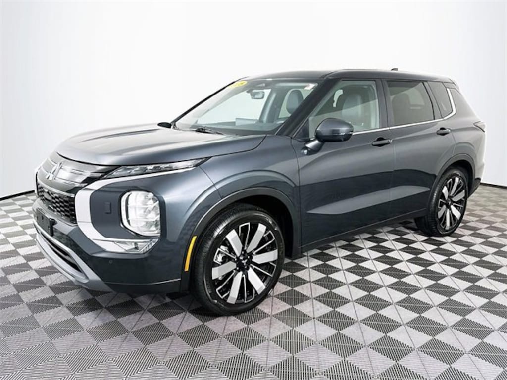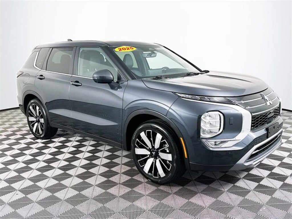 4WD, ABS brakes, Alloy wheels, Electronic Stability Control, Front dual zone A/C, Heated door mirrors, Heated Front Bucket Seats, Heated front seats, Illuminated entry, Low tire pressure warning, Navigation System, Power Liftgate, Remote keyless entry, Traction control, 3rd row seats: split-bench, 4-Wheel Disc Brakes, 8 Speakers, Air Conditioning, AM/FM radio: SiriusXM, Android Auto & Apple CarPlay, Auto High-beam Headlights, Auto-dimming Rear-View mirror, Automatic temperature control, Brake assist, Bumpers: body-color, Driver door bin, Driver vanity mirror, Dual front impact airbags, Dual front side impact airbags, Emergency communication system: Mitsubishi Connect w/ 24-month trial, Exterior Parking Camera Rear, Four wheel independent suspension, Front anti-roll bar, Front Bucket Seats, Front Center Armrest w/Storage, Front fog lights, Front reading lights, Fully automatic headlights, Garage door transmitter: HomeLink, Headlight cleaning, Knee airbag, Leather Shift Knob, Leather steering wheel, Occupant sensing airbag, Outside temperature display, Overhead airbag, Overhead console, Panic alarm, Passenger door bin, Passenger vanity mirror, Power door mirrors, Power driver seat, Power steering, Power windows, Radio data system, Radio: AM/FM 12.3 Navigation w/Smartphone-Link, Rain sensing wipers, Rear anti-roll bar, Rear seat center armrest, Rear side impact airbag, Rear window defroster, Rear window wiper, Reclining 3rd row seat, Security system, Speed control, Speed-Sensitive Wipers, Split folding rear seat, Spoiler, Steering wheel mounted audio controls, Synthetic Leather Seating Surfaces, Tachometer, Telescoping steering wheel, Tilt steering wheel, Trip computer, Turn signal indicator mirrors, Variably intermittent wipers, and Wheels: 20 Two-Tone Alloy. Clean CARFAX. Graphite Gray Mitsubishi 2025 Outlander SE